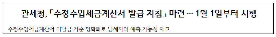 관세청, 「수정수입세금계산서 발급 지침」 마련 ··· 1월 1일부터 시행